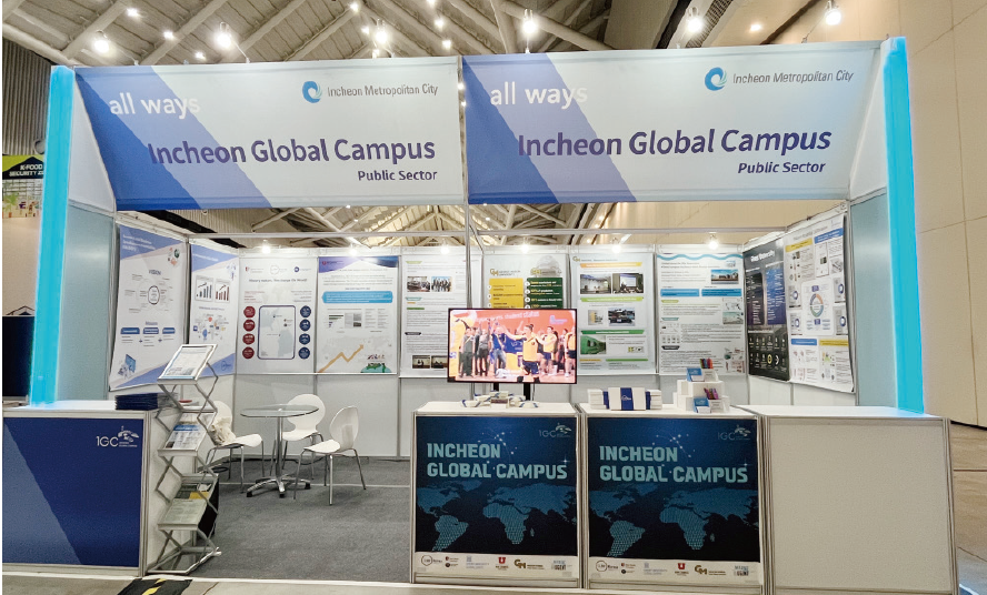 인천글로벌캠퍼스(IGC)는 지난 7월 26일부터 8월 15일까지 약 3주간 ‘2025 APEC 인천회의(제3차 고위관리회의 및 제반회의)’ 개최에 발맞춰 전시 홍보부스를 운영했다. 송도컨벤시아 전시2홀에 마련된 부스에서는 IGC 입주대학 산학협력단과 재단 관계자가 참여해 해외대학 연합캠퍼스로서의 산학협력 성과와 교육 모델을 제시했다. 이번 활동을 통해 인천글로벌캠퍼스는 IGC 입주대학 산학협력단의 성과를 알리고, 다시 한번 국제적 협력과 교류를 강화하는 계기가 됐다.